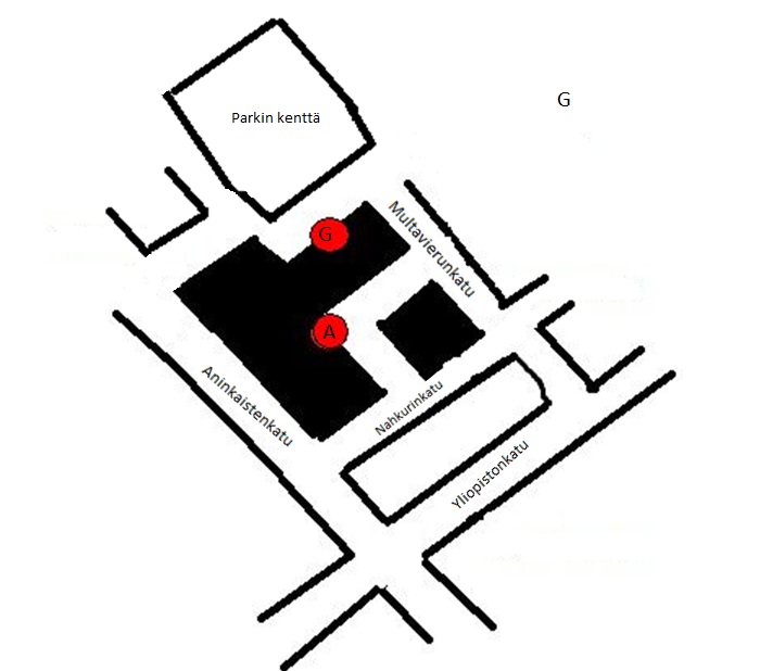 Katso sisäänkäyntien sijainti kuvasta: